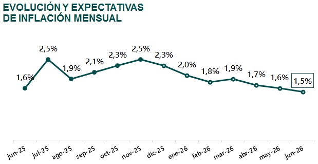 La inflación mensual bajaría a 1,5% en junio de 2026