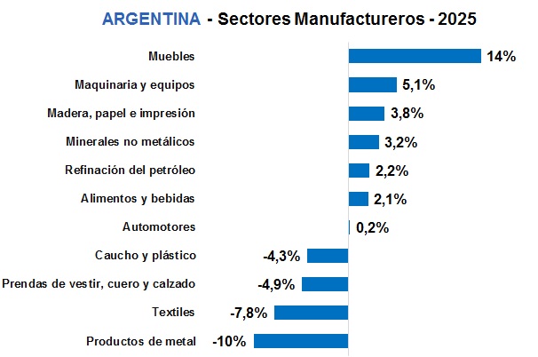 A pesar de esta contracción mensual, el sector acumuló un incremento del 1,6% en el total anual de 2025, impactado fundamentalmente por la baja base de comparación del año anterior, que había presentado una caída del 9,4% respecto a 2023.