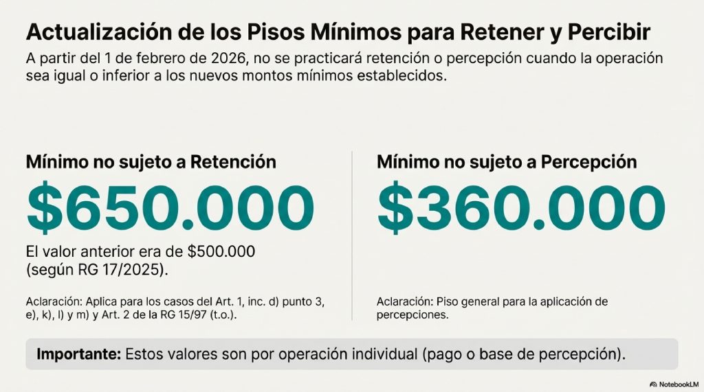 - Mínimo no sujeto a retenciones, de $500.000 pasa a $650.000 en general.